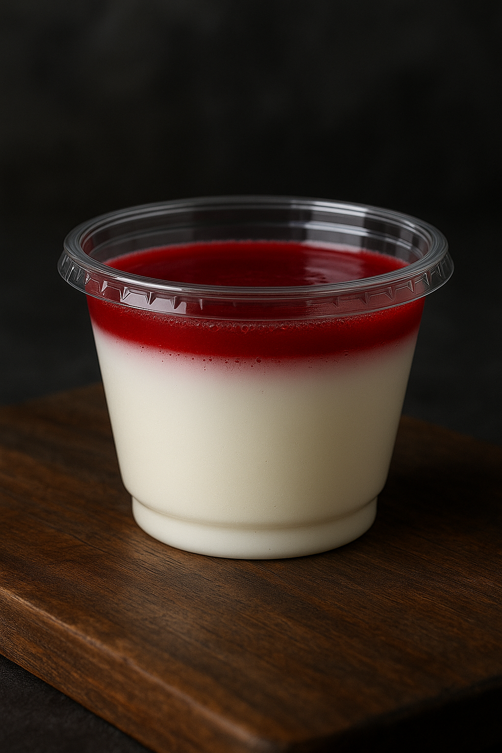 Légèrement amère et sucrée au coulis de fruits rouges.